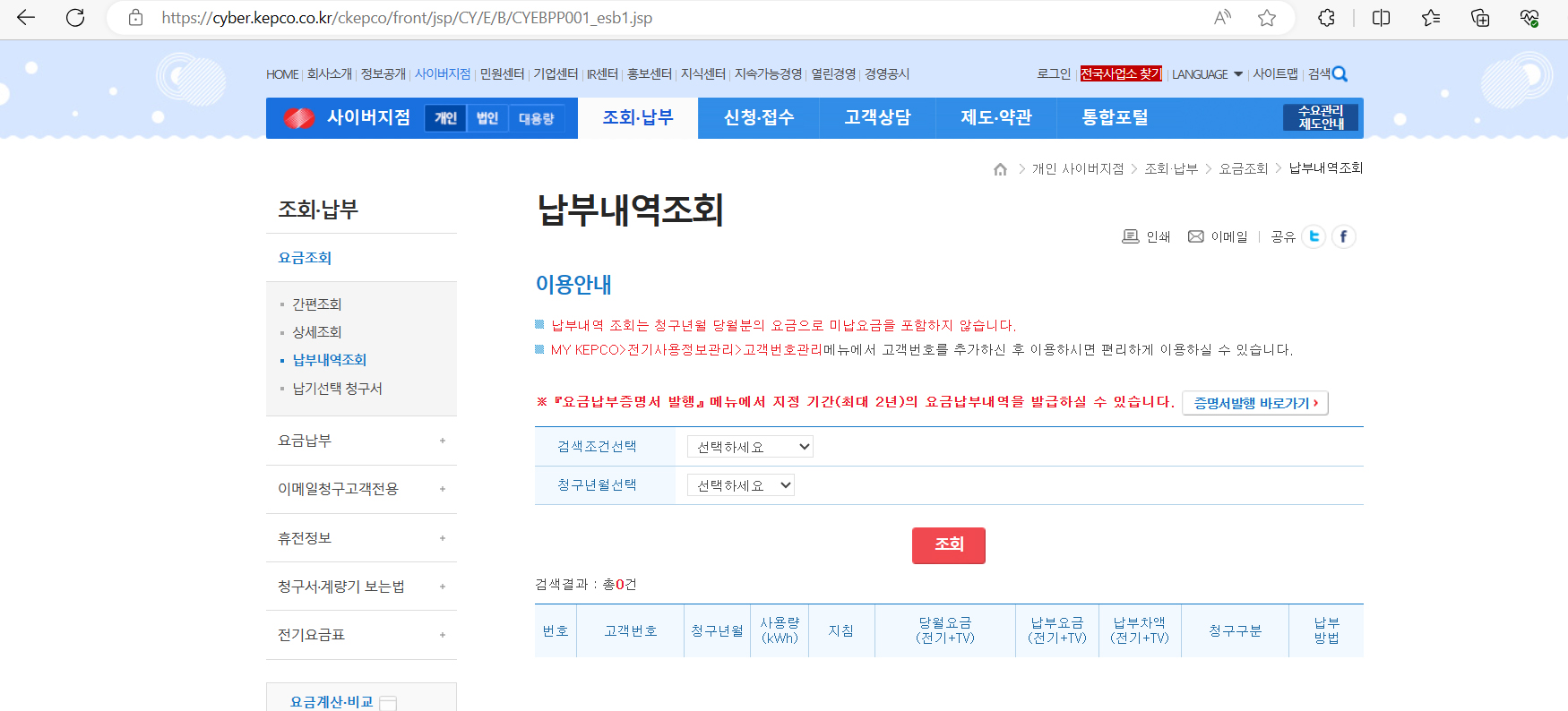 - 납부내역조회 | KEPCO -