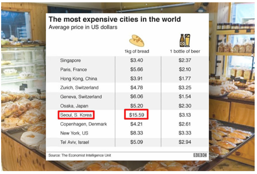 한국 15.5달러 1위!!!!!!!!!!!!!!!!!!! 대단하다~ 파리바게뜨!!