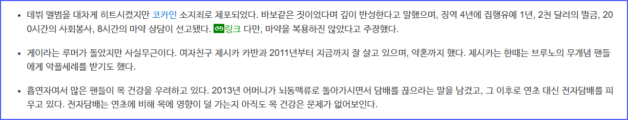얼마전 내한한 브루노마스도 한때 마약에 빠졌다고 하는데, 울나라 사람들 너무 열광적으로 좋아하지 않나?