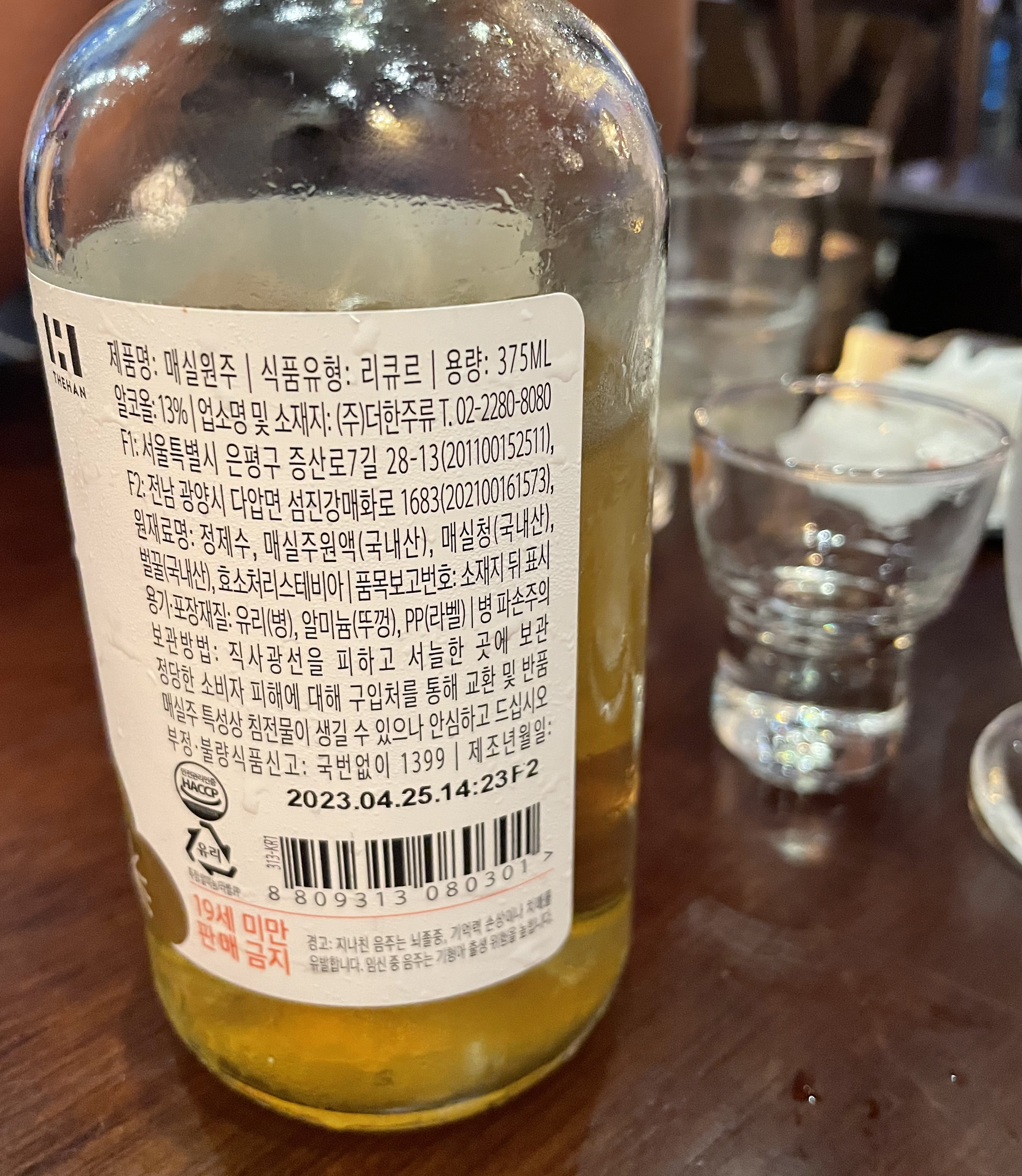 (매화수는 알콜도수 12도, 매실함유를 약 28%, 300ml 이네요)