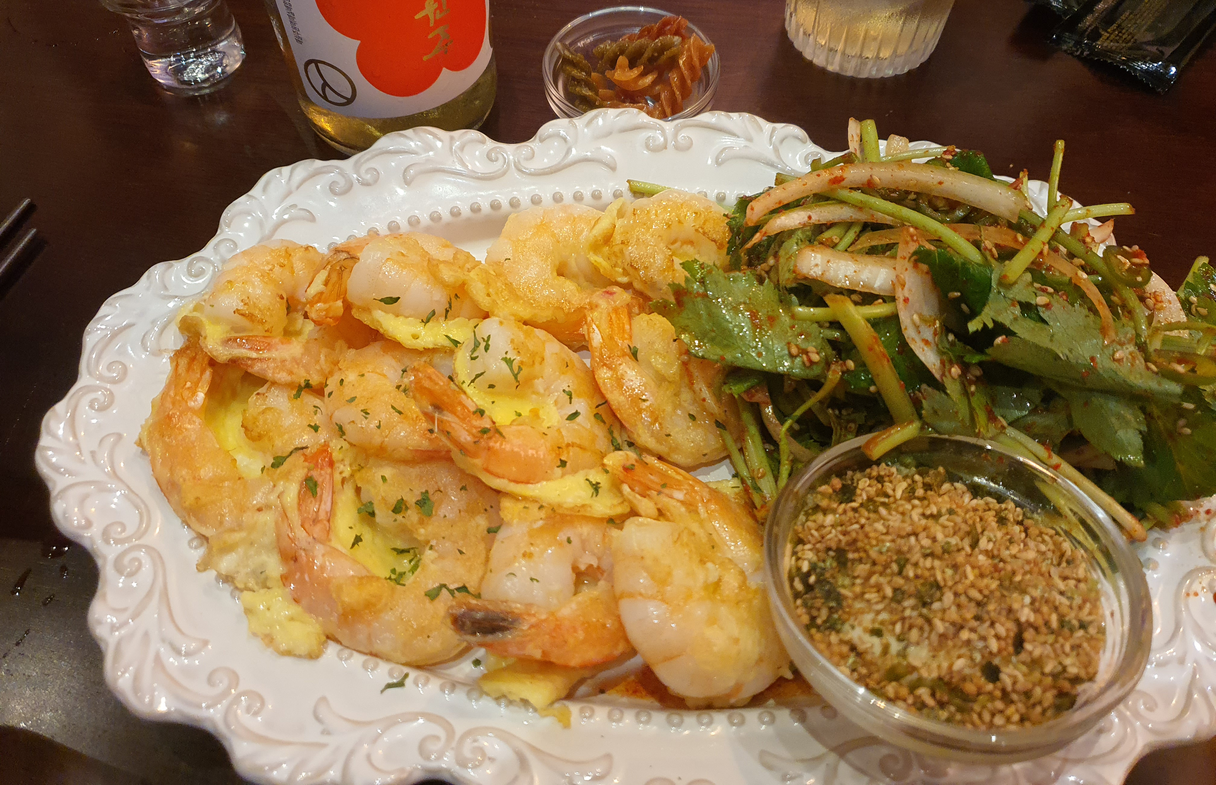 새우전과 매실원주, 기대보다 너무 맛있게 먹고 나왔어요.