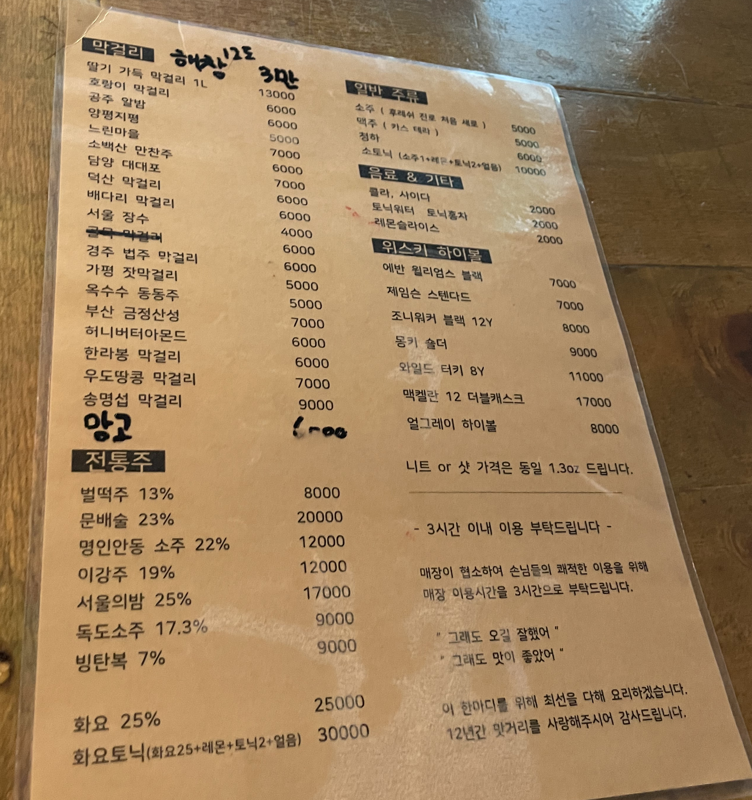 그리고 여러가지 막걸리들 시켜서 먹었어요. 이름들 첨 보는데 땡기는걸로 주문주문~ ㅋ
