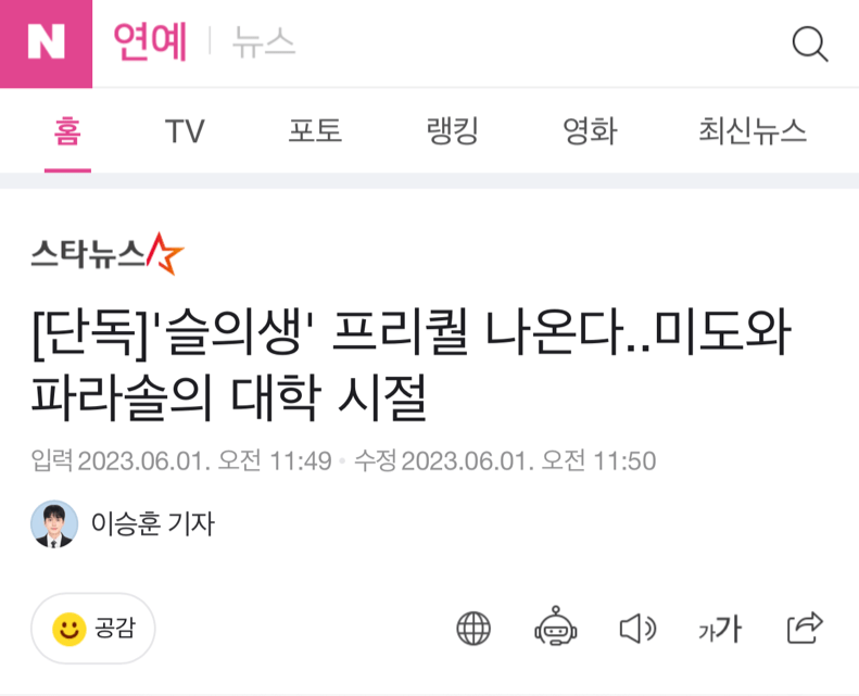 오늘 반가운 뉴스를 봤다.